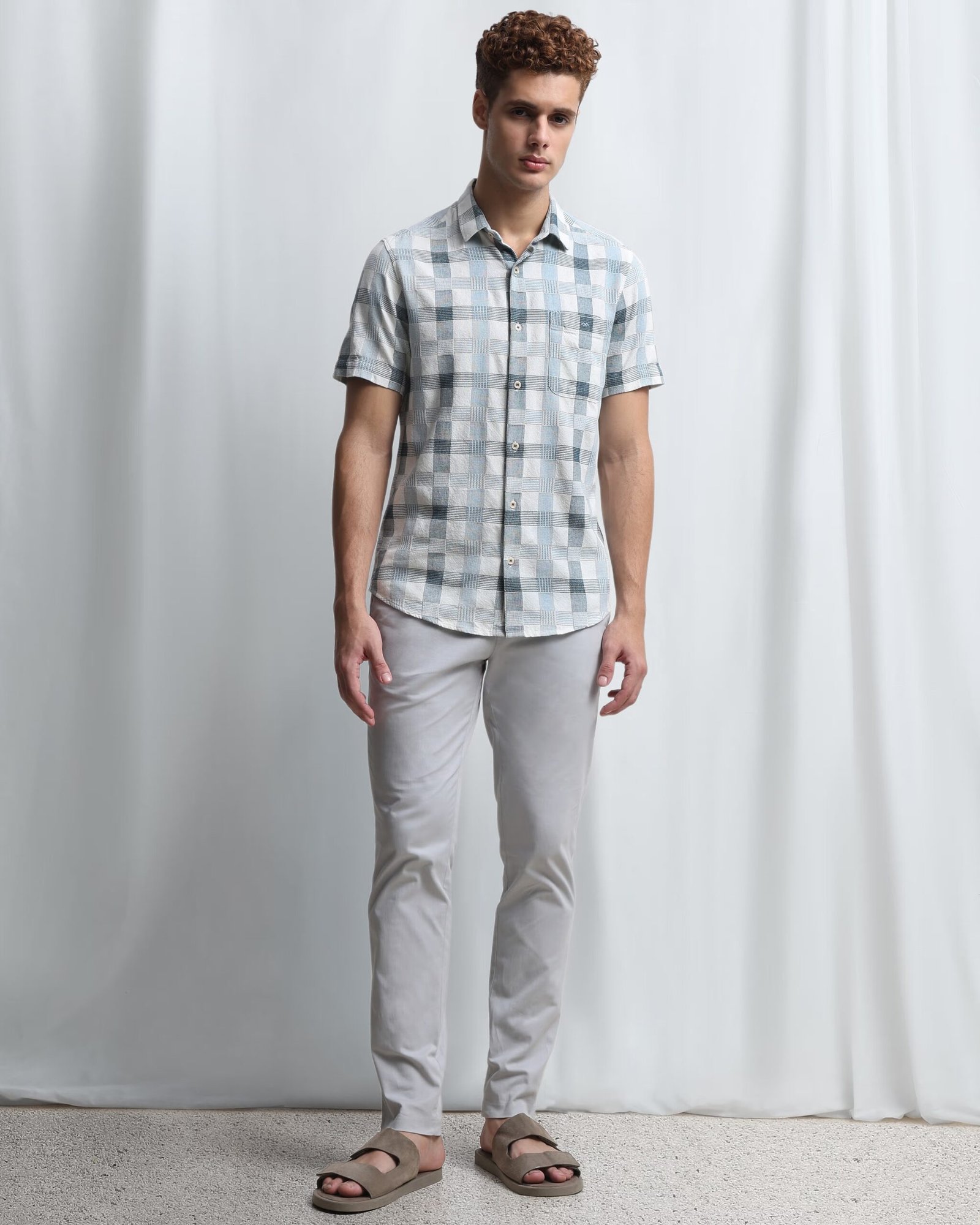 & Free ShippingCrafted from a breathable double cloth weave, this blue textured check shirt features half sleeves, a spread collar, and a single pocket. The cotton fabric keeps it crisp, while the subtle surface texture adds quiet dimension.